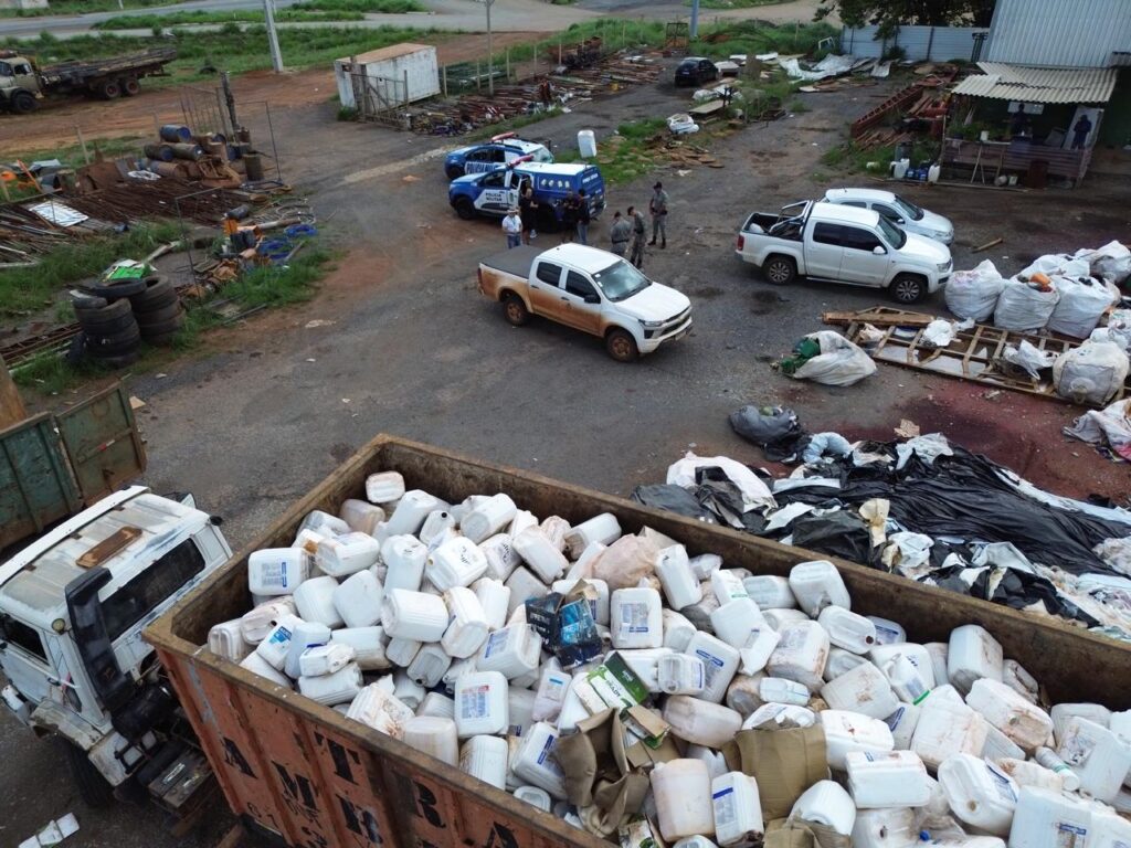 Equipes da Agência Goiana de Defesa Agropecuária (Agrodefesa), em ação conjunta com a Polícia Militar de Goiás (PMGO), apreenderam, na última quinta-feira (11/12), cinco toneladas de embalagens vazias de agrotóxicos que estavam sendo armazenadas de forma irregular no município de Cristalina, no Entorno do Distrito Federal.